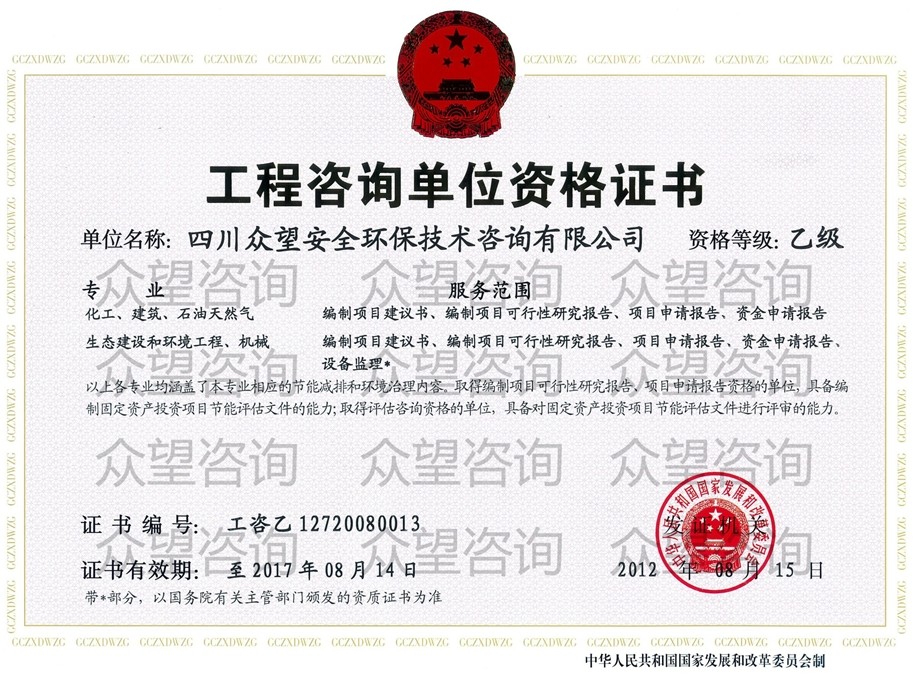 四川眾望安全環保技術咨詢有限公司 電 話:028-86258172/86258173/028-86258174/86258095 傳 真:028-86258093/86258552